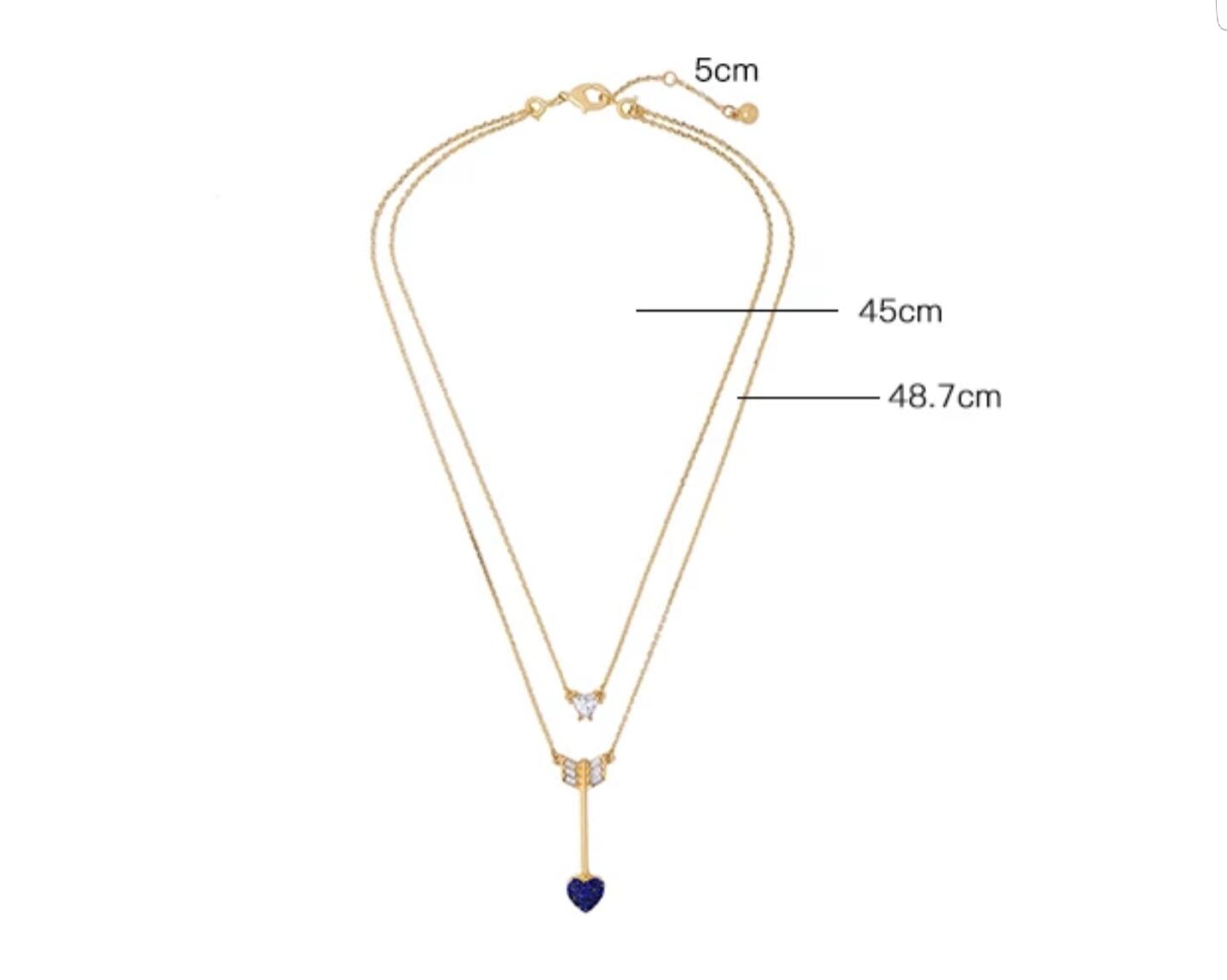 ハートの矢のデザインで、水色とクリアなクリスタルで飾られていて、とってもキュートでゴージャスなネックレスです✨